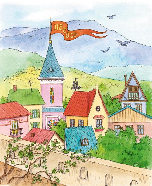 Все здесь помогают друг другу, можно увидеть даже, как большая лошадь помогает маленькому кролику. У коров в городе Небось в вымени находится не только молоко: у одних – лимонад, у других – какао со взбитыми сливками. Все угощают друг друга, и никто не голодает.