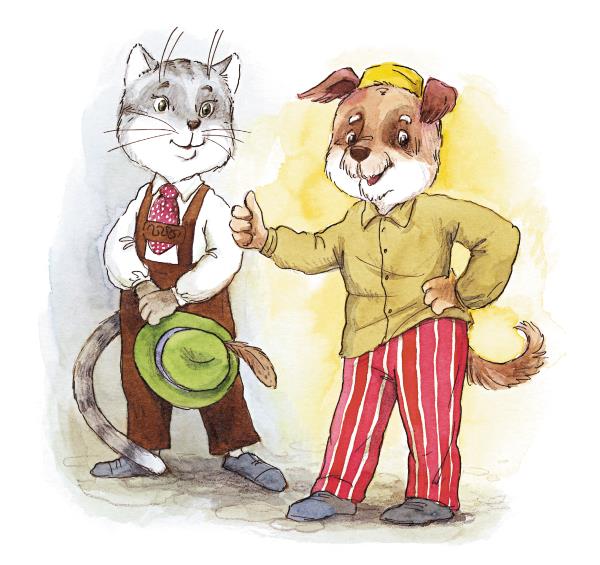 – Я тоже буду откровенным и хочу похвалить То. Он славный и для кота даже очень красивый. Сам-то я далеко не красавец, меня никто так и не называет, а вот его часто зовут Красавчик То. Такой красивой, мягкой шерсти нет ни у одного зверя. Недаром он её то и дело вылизывает. Признаться, я считаю его модником. Подумать только! Он носит зелёную тирольскую шляпу с пером. Когда-то и у меня была шляпа – чёрная, в ней очень удобно было таскать кости. Но она куда-то подевалась. То умудряется всегда быть в белой рубашке. Моя же становится грязной через пятьдесят секунд. К тому же он носит галстук в крапинку, непонятно для чего. Но я не хочу говорить о нём ничего дурного. Он – хороший парень. Ну вот мы и представились. Не знаю, что бы ещё рассказать…