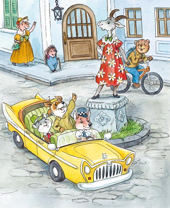 На железнодорожном вокзале стоит такси, таксиста зовут Макс Пятидесятый. По-вашему, это странное имя? Но всё объясняется очень просто. Он пятидесятый таксист в Небосе, которого зовут Макс. У бедного Макса такие короткие лапы, что они едва достают до земли, поэтому ему приходится ездить на автомобиле.