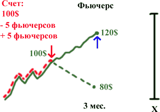 Сделка открыта, и в течение времени, скажем двух недель, цена на зерно снижается до 80 долл. При достижении этой цены мы покупаем 5 фьючерсных контрактов, при этом помним, что покупка фьючерсных контрактов это новое обязательство, в текущем примере это будет звучать следующим образом —