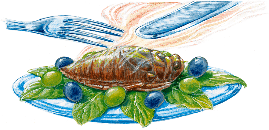 – А простые греки-прозаики жарили эту богоподобную цикаду в масле и с аппетитом ели… Даже таким насекомым, как муравьи, и тем случалось попадать в руки поваров. Когда-то во Франции из муравьёв делали соус к мясным и рыбным кушаньям… Индейцам, между прочим, очень нравятся зонтичные муравьи. Они жарят их, чуть подсолив, на сковородке, но, бывает, едят и сырыми.