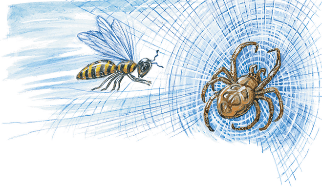 Паук попробовал напасть на нее сзади, сбоку, но всякий раз его встречало осиное жало.