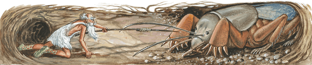 Земля с гулом рухнула. По стенам тоннеля пронесся шорох. Шершавые усы медведки протянулись к профессору, ощупывая в темноте его голову и плечи. Иван Гермогенович рванулся назад и принялся наносить чудовищу по голове бессчетные удары копьем.