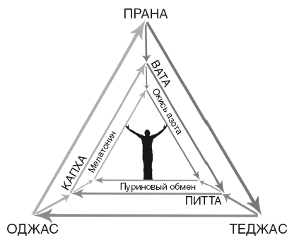 Древними мудрецами было определено, что в природе существуют три первичных источника жизни: Прана (жизненная энергия), Теджас (жизненный огонь) и Оджас (жизненная сила). Прану, энергию, пронизывающую всё живое, современная медицина ни с чем не сравнивает, нет такого в ней понятия, Теджас несколько грубо сравнивают с пищеварительными процессами организма, Оджас – с иммунитетом.