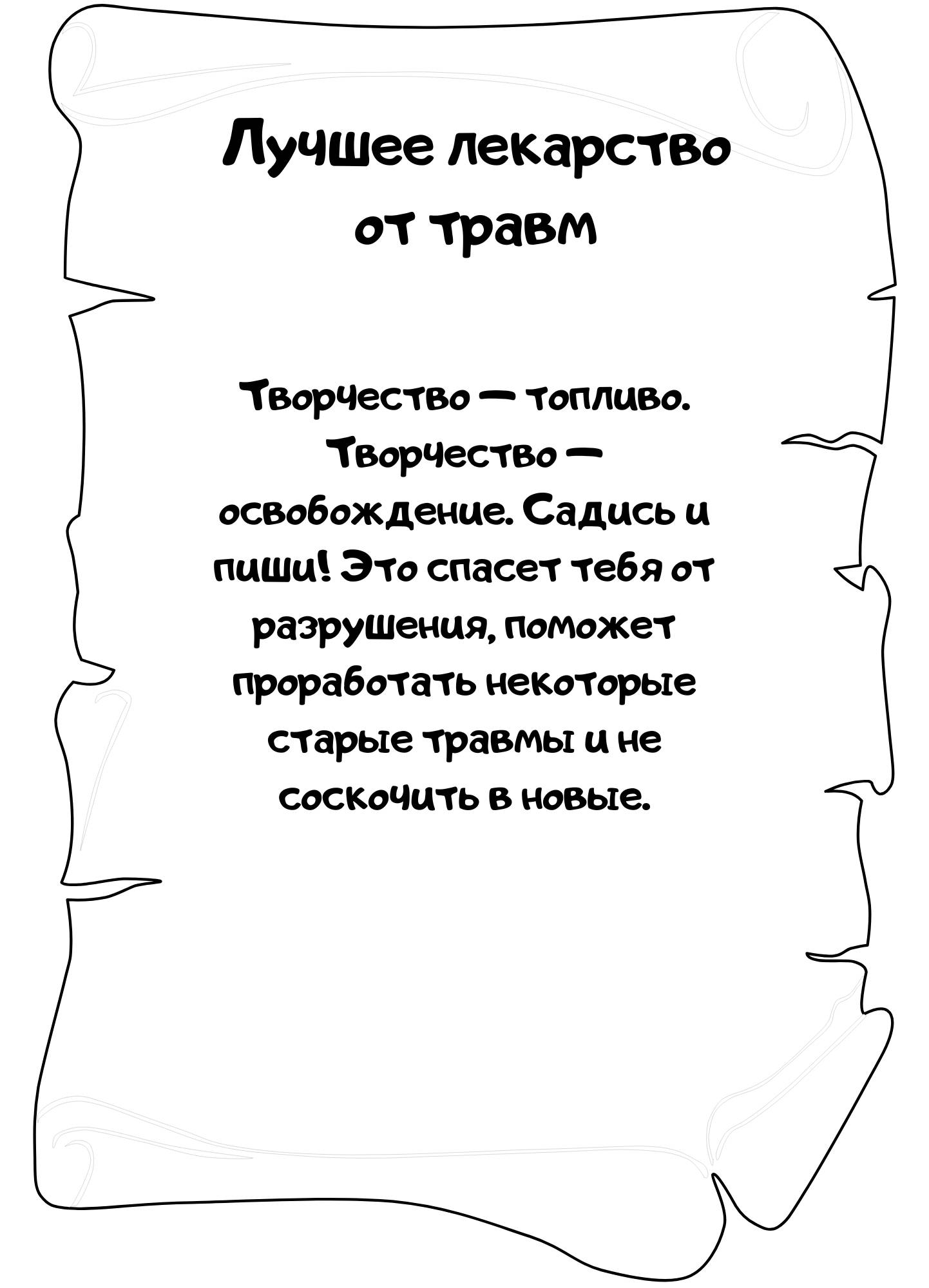 Моя жизнь бывала очень травматичной и тяжелой. Я знаю, о чем говорю. Мой опыт личной терапии и образование дали мне понять, насколько я была травматиком. Но сейчас понимаю, что именно всегда помогало и что станет настоящим лекарством и для тебя. Как пережить любое время и не разрушиться? Через творчество!