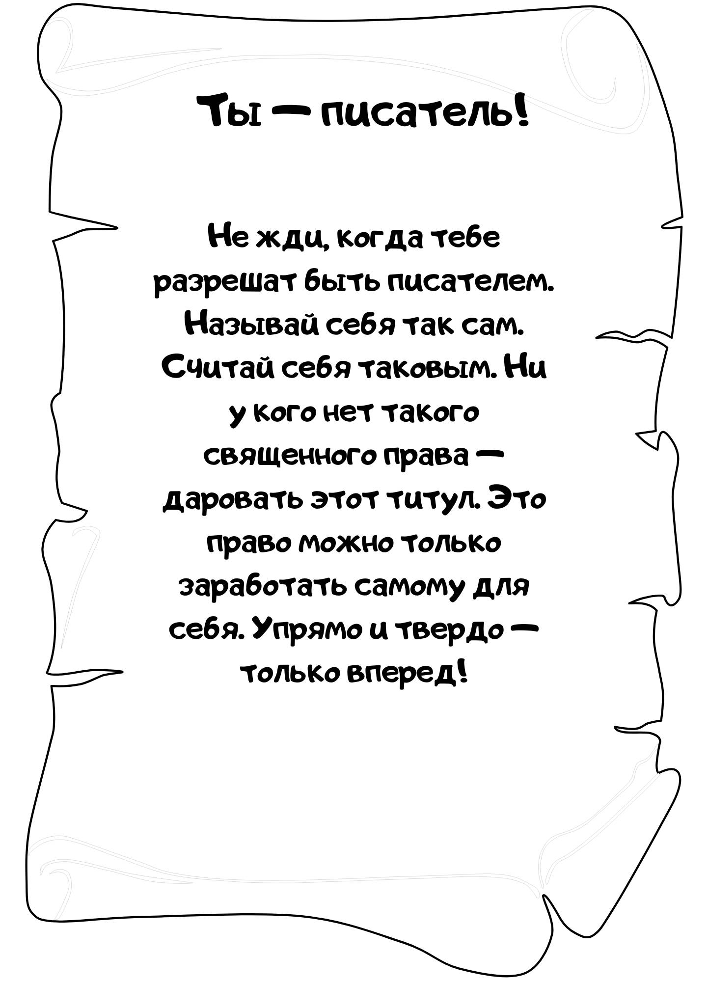 Многие мастера и преподаватели слова, и я в том числе, говорят: «Право писать есть у каждого». Есть талант или нет – не суть. Любой талант без практики загнется. Любой не-талант при желании и грамотном учителе расцветет!