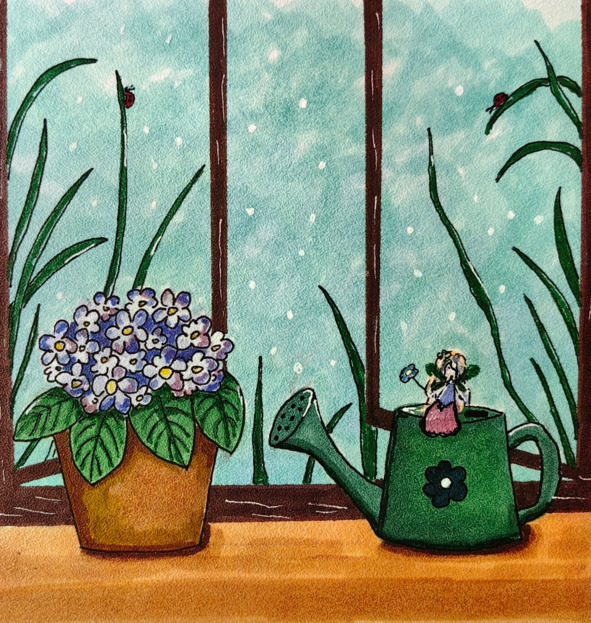 Хозяйка Шэлли, поливая цветы, даже не подозревала, что в её фиалке живёт настоящая волшебница. Она аккуратно приподнимала листья, проверяя влажность земли, и Миля затаивала дыхание, когда над её домом склонялась огромная лейка. Тёплые капли дождя мягко стекали по лепесткам, освежая воздух в домике и оставляя после себя лёгкий аромат летнего ливня.