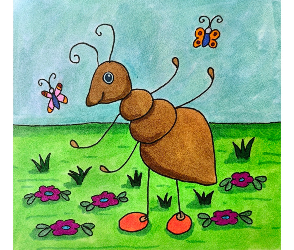 Муравьишка засиял от счастья. Новые башмачки идеально подошли.