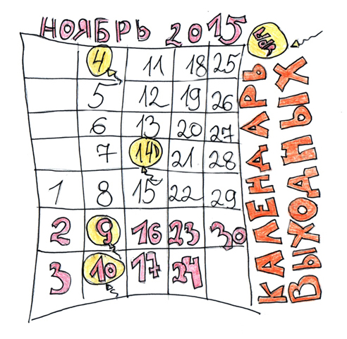 С появлением календаря выходных дней сын перестал мучить меня вопросом каждую минуту от дома до детского «Сколько дней еще осталось до выходных?» С появлением календаря сын стал сам всем детям в саду говорить: «Ещё два дня и выходной! Потерпи! Вот смотри, у меня все нарисовано».