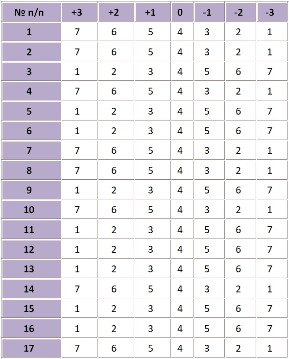 Поставьте цифру (от –3 до +3) около каждого из утверждений. Отвечайте не раздумывая.