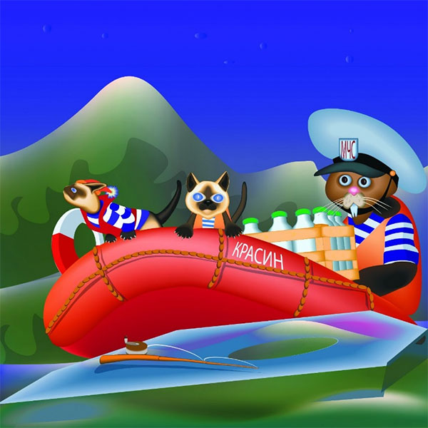 – Ой, ало, ало, ало!Нам тут очень тяжело,Нас куда-то понесло!Помогите нам быстрей, помогите!Нас отсюда поскорей заберите!– Успокойтесь, прошу, не кричите,Что случилось, Вы нам расскажите?– Мы пушистые сиамские котики.Мы на льдине стоим, как на плотике,Намочили мы лапки, животики.– Сориентируйте нас на местности,И какие там пункты в окрестности?Сколько вас? Объясните причину,Как же вы попали на льдину?– Мы вдвоём пошли на рыбалкуЗа деревню на Старую Балку.[4]Не дождались мы летнего знояИ пошли за рыбёшкой весною.Только лунку во льду просверлили,Лёд как треснет и льдины поплыли.Мы на льдине и плачем, и стонем,Неужели, мы все тут утонем?– Вы там, котики, чуть-чуть потерпите,Помощь к вам направляется, ждите.Не прошло и часа,Звонит команда наша.