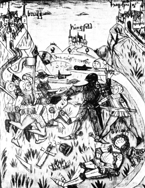 Иллюстрация из «Хроника 95 господ» Л. Штейнройтера. Конец XIV века