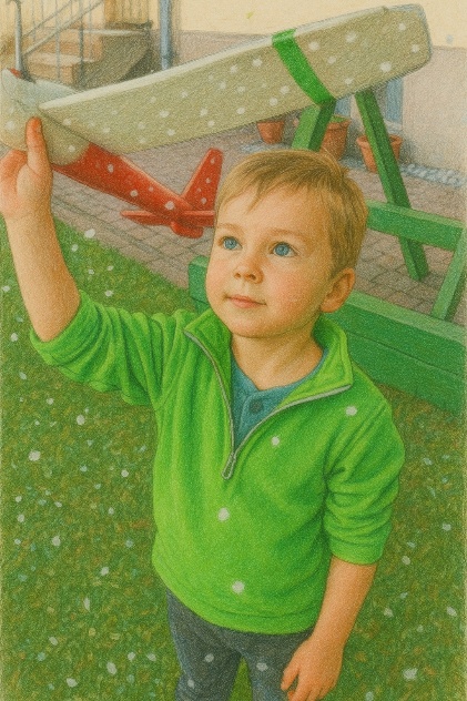 Прадед очень весёлый, он играет на гармошке, поёт песни и рассказывает нескончаемые истории про свои морские приключения. Ведь когда-то давно он был моряком.