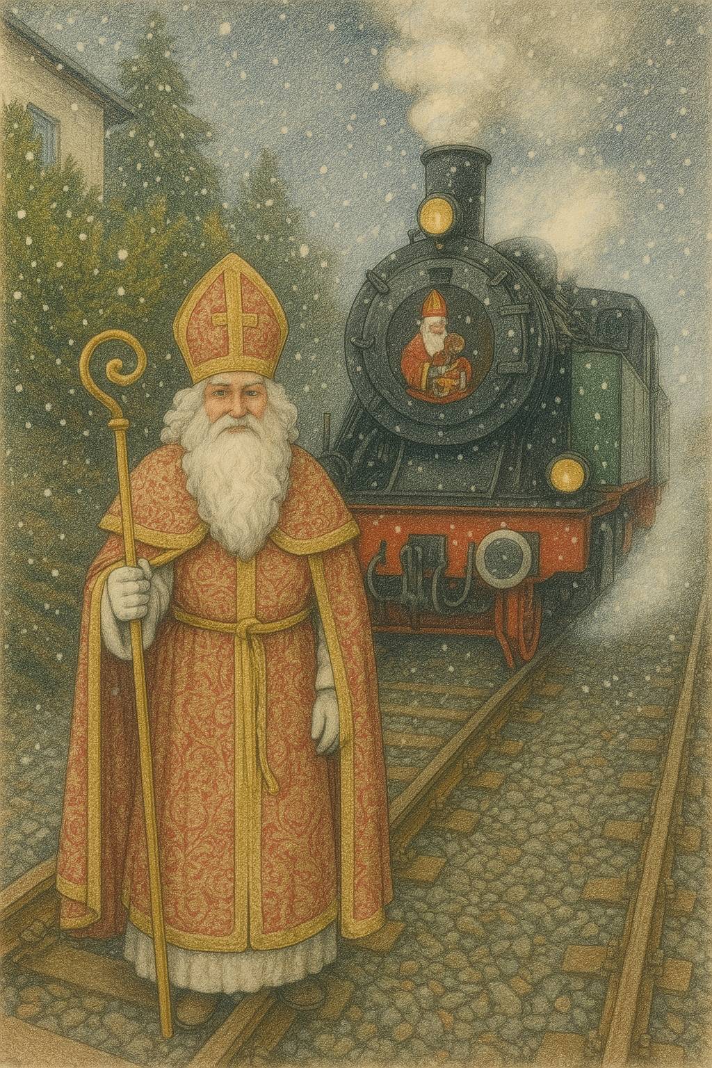 Дверь приоткрылась. Я не мог поверить своим глазам. К нам в вагон заходил самый настоящий Николаус. В одной руке он держал посох, другой рукой придерживал мешок, который висел у него на плече. На голове у него была митра, а лицо украшала белая и пушистая борода.