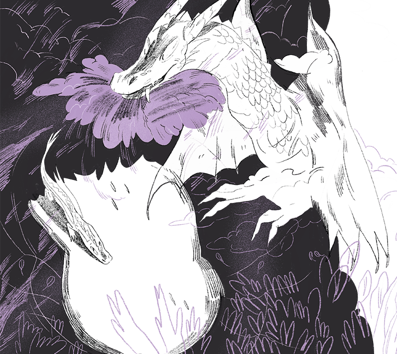 Белый дракон распрямился во весь рост, вытянув шею далеко за кроны деревьев, и выдохнул в небо струю ослепляюще-яркого пламени. Ощутив чешуйками жар даже с земли, Ики быстро попятился.