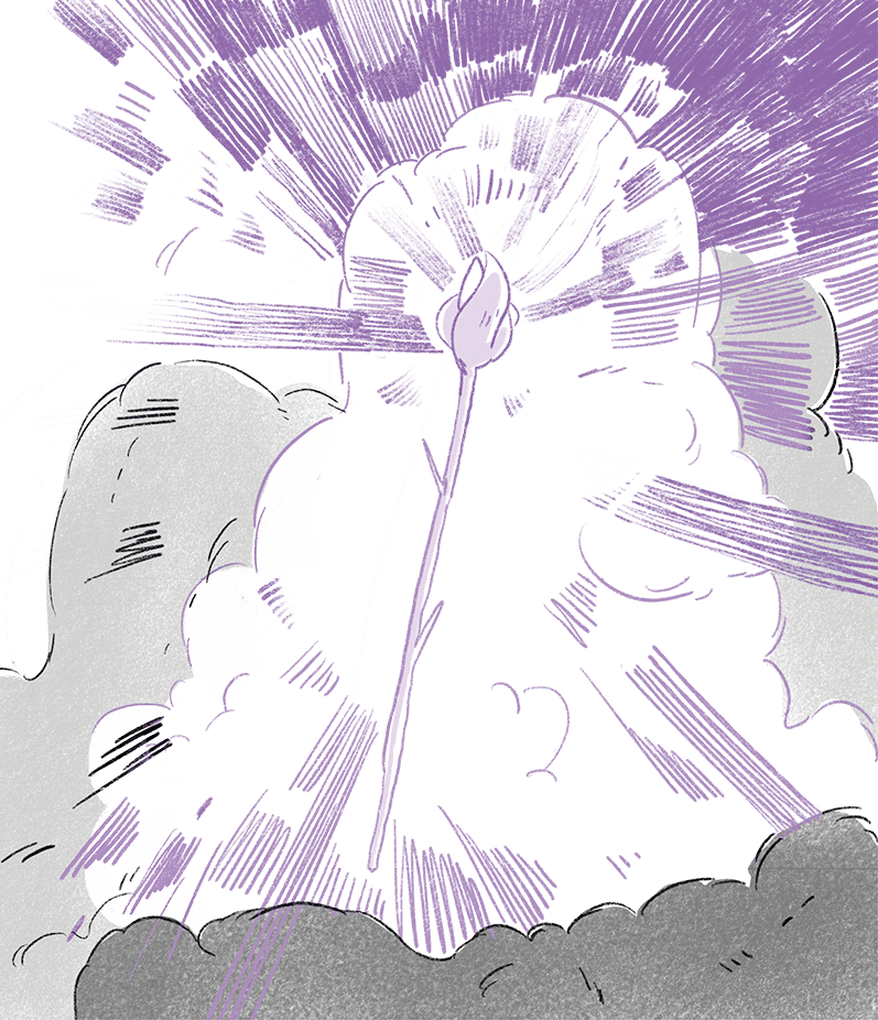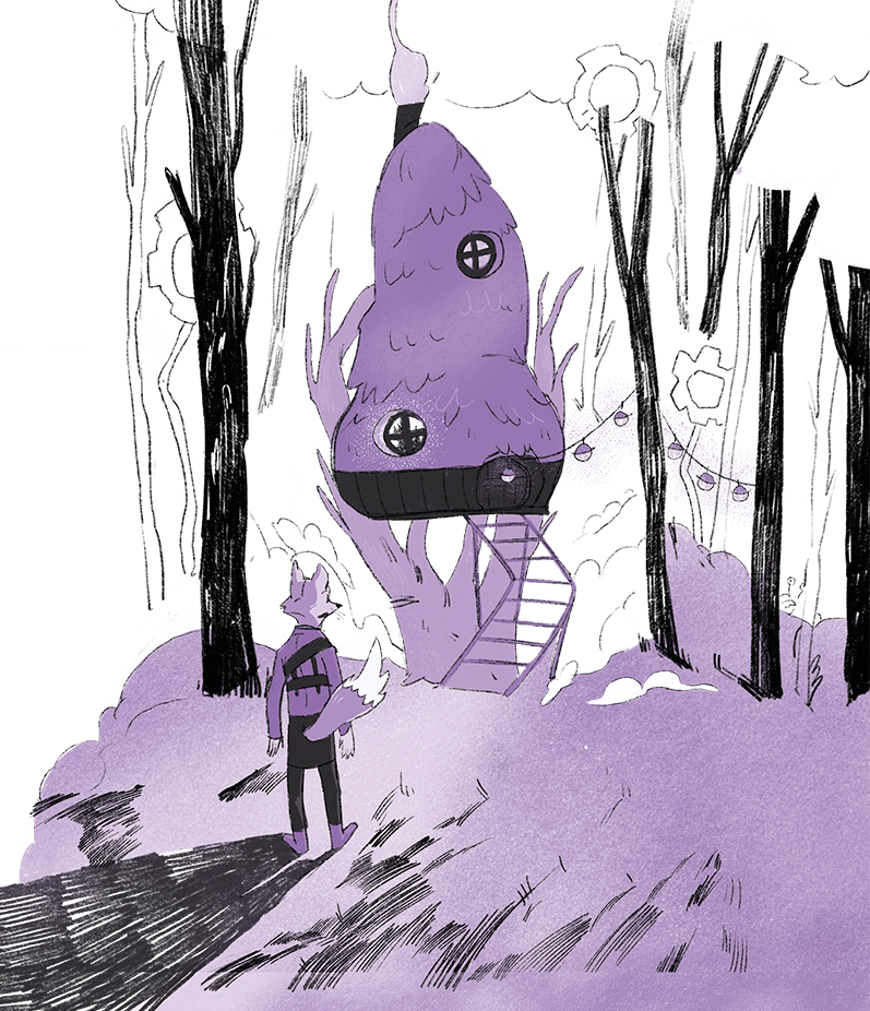 Ломри устремился к источнику звука, пробираясь сквозь густой туман. Вскоре он увидел неяркий тёплый свет, а подойдя ещё ближе, различил небольшую хижину с горящими окнами. Музыка доносилась изнутри. Кио направился к двери и тихонько постучал. Дверь скрипнула и приоткрылась.