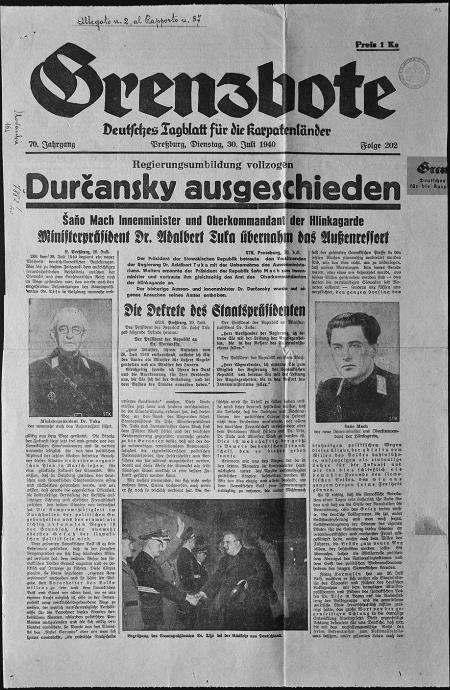 Статья из газеты «Гренцботе», в которой сообщается о том, что Тука сменил Дюрчанского на посту министра иностранных дел3