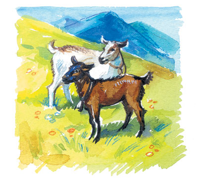 Так дети наконец добрались вместе с козами наверх, до хижины, и предстали перед тётей Детой. Но та, едва завидев всю компанию, возмущённо закричала:
