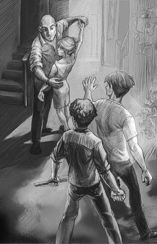 Не понимая, что происходит, он юркнул в переулок и пошел на звук. Узкий проулок в конце расширялся, открывая то ли стоянку, то ли широкий подъезд к черному входу кинотеатра. А там кто-то держал девушку, и что-то в ней было знакомое.