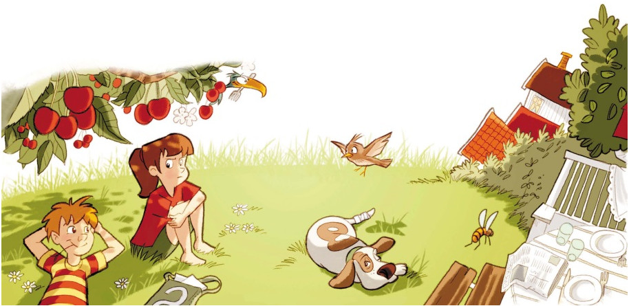 Троица лежала в высокой траве под вишней. Это была единственная вишня в Эльвестаде, на которой росло так много ягод. Сквозь листву ее очень густой кроны в сад проникали лишь редкие лучи солнца.