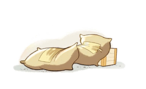 Восьмерчик проскочил между ног пекаря на склад и стал обнюхивать землю. Он обежал сложенные друг на друга мешки с мукой и вернулся к Монсену.