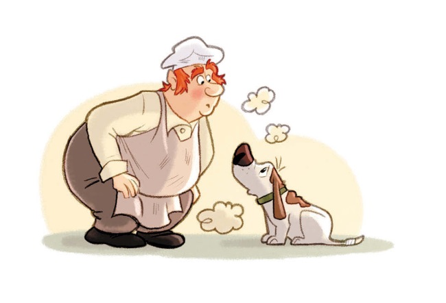 Восьмерчик пошел вслед за Монсеном. Он унюхал на полу остатки дрожжей, повел ноздрями, и от разных запахов у него защекотало в носу. Пес засопел и громко чихнул.