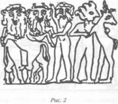 Это точное описание гоминидов, населявших Землю наряду с другими животными. Шумерские рисунки, вырезанные на каменных цилиндрах (так называемые «цилиндрические печати»), изображают подобных гоминидов среди животных, только они стоят на двух ногах – очевидное (к сожалению, игнорируемое учеными) изображение Homo erectus (рис. 2). Именно этому существу Энки предложил придать «подобие богов» и посредством генной инженерии создать землянина, или Homo sapiens.