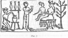 На цилиндрических печатях шумерские художники изобразили этот кульминационный момент, когда Нинмах/Нинти поднимает новорожденного, чтобы все могли увидеть его (рис. 3). Таким образом, резьба на маленьком цилиндре из камня – это графическая запись первой встречи человека с божественным.