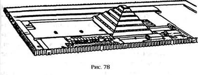 Строительство пирамид египетскими фараонами началось с пирамиды фараона Джосера в Саккаре (южнее Мемфиса) примерно в 2650 году до нашей эры (рис. 78). Ее шесть ступеней, расположенных внутри прямоугольного святилища, изначально были облицованы гладкими плитами из белого известняка, от которых до нашего времени дошли лишь следы. Облицовка и этой, и следующих пирамид использовалась другими правителями при возведении собственных монументов.