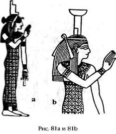 Более того, египетским был не только сам зиккурат – обычая носить на голове его макет придерживались египетские богини. Самой влиятельной из них были Изида, сестра и жена Осириса (рис. 81а), а также ее сестра Нептис (рис. 81б).