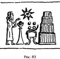 Вполне возможно, что рисунок на цилиндрической печати второго тысячелетия до нашей эры, найденной в Малой Азии, запечатлел события, происходившие в Лагаше на тысячу лет раньше: на нем Верховный Жрец (чаще всего он был одновременно и царем, как Гудеа) зажигает огонь на алтаре перед зиккуратом, а в небе над ним сияет «благоприятная планета» (рис. 83).