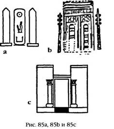 В Египте у входа в Солнечные Храмы устанавливались два обелиска (рис. 84), которые предназначались для того, чтобы направлять солнечный луч в предписанный день. Э. А. Уоллис Бадж («The Egyptian Obelisk») отмечал, что фараоны, например, Рамзес II и царица Хатшепсут, всегда воздвигали такие обелиски парами. Царица Хатшепсут даже приказала вырезать свое имя (внутри орнамента) между двумя обелисками (рис. 85а), чтобы благословенный луч Ра падал на нее в этот важный день.