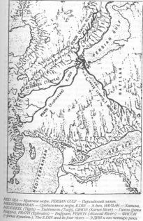 В этой части гор Загрос протекают несколько крупных рек, но они не привлекали внимание ученых, поскольку ни одна из них не соединяет свои воды с Тигром и Евфратом (их истоки находятся в нескольких сотнях миль на северо-восток). А если древние имели в виду не общие истоки рек, а их слияние в районе устья? В таком случае Тихон – четвертая река рая – должна сливаться с Тигром, Евфратом и недавно открытой «рекой Кувейт» при впадении в Персидский залив!