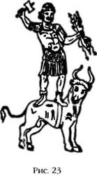 Латинские имена богов – римляне позаимствовали греческий пантеон – подчеркивают небесные ассоциации: Гея – Земля, Гермес – Меркурий, Афродита – Венера, Арес – Марс, Крон – Сатурн, Зевс – Юпитер. Продолжая греческую традицию, римляне представляли Юпитера в виде бога-громовержца, оружием которого были стрелы молний; подобно грекам, они ассоциировали его с быком (рис. 23).