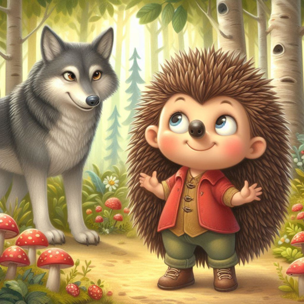– Меня зовут Олин и мне нужно найти самый вкусный и редкий гриб в лесу, – сказал ёжик. – Это очень важно для меня. Если я не найду его, то волчица съест меня.