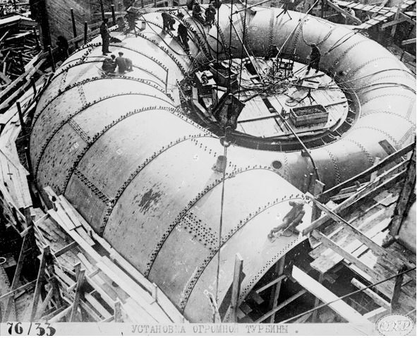 Монтаж турбины на ДнепроГЭС в 1932 г.