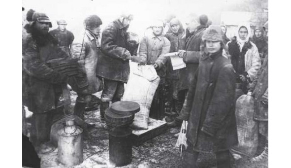 Раскулачивание, выводившее из хозяйственной жизни деревни наиболее инициативных производителей, резкий переход от единоличного хозяйства к обобществленному, принудительный отъем крупной доли сельскохозяйственной продукции на нужды индустриализации легли тяжким бременем на советскую деревню тридцатых годов. Самая малоимущая часть крестьянства – бедняки, улучшила свое положение за счет возможности трудиться и получать свою долю в общем хозяйстве, но большинство сельского населения – так называемые середняки, с трудом приспосабливались к новым условиям. Колхозники не могли сходу преодолеть все разногласия и эффективно организовать совместный труд; урожай, фураж, мясная и молочная продукция, хранящиеся теперь на общих складах, в случае пожара, наводнения и прочих чрезвычайных ситуаций так и погибали во всем количестве; среди скота, содержащегося на общих фермах, быстрее распространялись эпизоотии. Директивы партийного руководства, представители которого нередко имели весьма поверхностное представление о сельскохозяйственной деятельности, сковывали экономическую инициативу колхозов, спутывали их планы. Выходцы из бедняцкой среды могли поправлять свои дела по сравнению со своим прежним положением, но в целом же происходило резкое обнищание деревни. В результате впервые со времени Гражданской войны СССР пережил масштабную социальную катастрофу: в сложившихся тяжелейших экономических условиях неурожай 1932 г. привел к массовому голоду, охватившему преимущественно степные районы Украины, российского Черноземья, Поволжья, Северного Кавказа, Южного Урала, Западной Сибири и Казахстана, а также часть Белоруссии. Молодое, не набравшееся опыта борьбы с подобными катастрофами советское государство не смогло оперативными мерами справиться с голодом. Его жертвами стали несколько миллионов человек, целые местности были опустошены. Это сильно дискредитировало советскую власть в пораженных голодом регионах, способствовало распространению солидарности местного населения с призывами продолжавшего подрывную деятельность антисоветского подполья. И впредь в переживших голод 1932 – 1933 гг. областях стойко сохранялись, хотя и со временем сгладились, антисоветские настроения, а на Украине следствием голода стало возникновение и определенной межнациональной напряженности: чтобы заново поднять ее опустошенные степные земли, советское руководство организовало массовое переселение туда из РСФСР. Чтобы не уронить авторитет советской власти и сталинской политики в остальных регионах СССР, советской печати было категорически запрещено упоминать о голоде. Несмотря на масштабы бедствия, для получения средств на нужды индустриализации было продано 18 млн. центнеров зерна за границу.