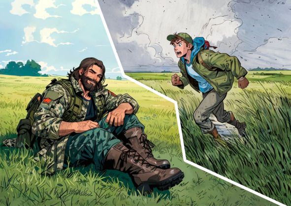 Сердце опять вздрогнуло и ушло куда-то еще глубже. Он обернулся на звук голоса. Рядом полулежа в траве находился мужчина. Густая борода и волосы сливались с мехом на плечах. Одежда выдавала в нëм охотника, а карабин и лук, лежавшие рядом, подтверждали догадку. Мужчина смотрел на него изучающим прищуром, слегка улыбаясь. Иван посмотрел по сторонам, кругом была голая степь. Травяные холмы скрывали за собой большую часть горизонта, но ни души вокруг не было видно: ни людей, ни построек, ни машин. Что этот человек тут забыл?