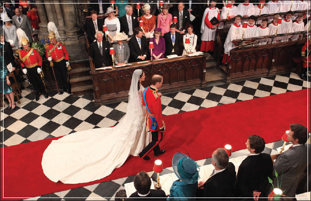 День королевской свадьбы, 29 апреля 2011 года, официально объявили нерабочим, чтобы все британцы смогли наблюдать за столь редким историческим событием. Церемонию, которая проходила в Вестминстерском аббатстве Лондона, транслировали по всему миру, а вел ее сам архиепископ Кентерберийский.