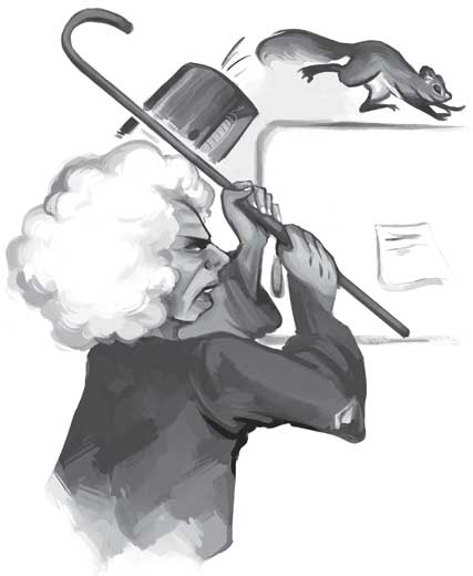 Ма снова замахивается тростью, и на этот раз ручка с силой обрушивается на картонную коробку. Мы с белкой хором ахаем. Непохоже, чтобы Ма волновало то обстоятельство, что внутри коробки сидит что-то живое. Она снова заносит трость над головой, и белка сдается. Она пятится прочь от смятой коробки, подняв лапки в знак капитуляции.