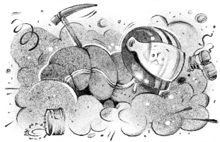 Пэ-Пэ обхватил голову руками и погрузился в глубокие раздумья. Из-за шлема можно было подумать, будто он держит в руках огромную тыкву, как в фильмах про Хеллоуин.