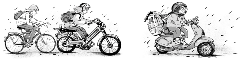Пьер-Поль ехал первым, восседая на своей «Веспе», как король на троне. Моя старушка мобилетка весело тарахтела за ним, а Реми на крутых подъёмах хватался рукой за мой багажник, чтобы не крутить педали. К счастью, дорога была достаточно ровной, и к тому же мы с Пэ-Пэ забрали у Реми рюкзак, чтобы немного облегчить ему жизнь.