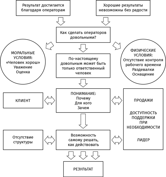Позже, когда другие боссы стали задавать вопросы по текущему положению дел и внедрению системы, эти схемы помогли мне поделиться с ними своими мыслями. Но изначально единственная цель состояла в том, чтобы донести мои идеи до самых важных для меня сотрудников: операторов.