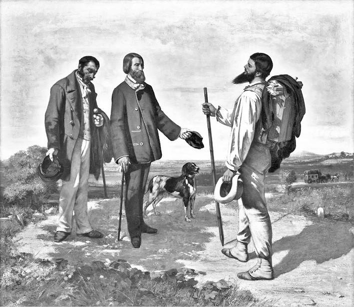 Курбе, некоторое время занимавшийся преподавательской деятельностью, имел смелость наставлять своих учеников: «Пиши то, что ты видишь, то, что ты хочешь, что ты чувствуешь». Разве эти слова не выражают суть импрессионизма? И хотя сам Курбе работал только в мастерской, он, пытаясь передать на полотне ощущение открытого пространства, интенсивность освещения и игру света, стал использовать вибрирующие цветовые пятна, что особенно заметно на его знаменитом полотне «Встреча, или Здравствуйте, господин Курбе» (1854), а также на некоторых пейзажах, например на выставленном в Салоне (1870) полотне «Отвесные скалы Этрета». Мы уже говорили, что Курбе бывал в районе устья Сены, и в первую очередь в Онфлёре, где в 1854 г. он и встретил Будена.