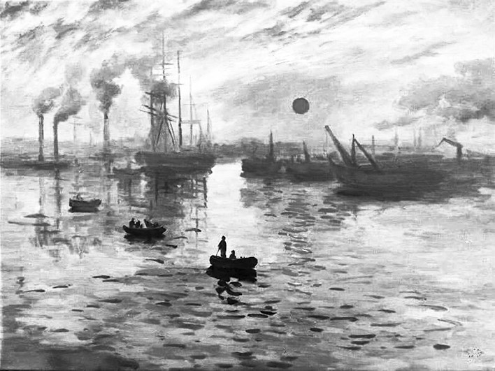 Само слово «импрессионизм» применительно к художникам, которые нас интересуют, впервые употребил малоизвестный журналист Луи Леруа; его статья, опубликованная 25 апреля 1874 г. в газете «Шаривари», называлась «Выставка импрессионистов» и была посвящена первой выставке, организованной «Анонимным обществом художников, живописцев, скульпторов, граверов и пр.», проходившей с 15 апреля по 15 мая того же года в бывшем ателье фотографа Надара, в доме № 35 по бульвару Капуцинок. Этим словом, на которое журналиста натолкнуло название картины Клода Моне «Впечатление. Восход солнца» (1872–1873), где изображен окутанный утренней дымкой порт Гавра, Леруа хотел выразить свое пренебрежительное отношение к художникам, отказавшимся от традиционных выразительных средств ради передачи своих собственных зрительных впечатлений. Однако заметим, что Антонен Пруст, вспоминая об Эдуарде Мане, писал в «Ревю бланш»: «Слово «импрессионизм» появилось не благодаря выставленной картине Клода Моне «Впечатление. Восход солнца», как утверждает Бенедит, – оно родилось во время наших споров в 1858 году».