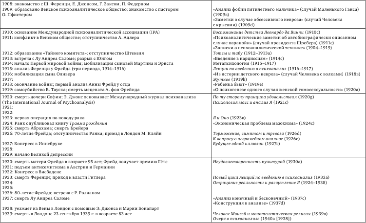 ЗИГМУНД ФРЕЙД (1856–1939) ХРОНОЛОГИЧЕСКАЯ ТАБЛИЦА