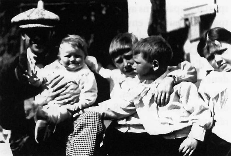 В саду виллы «Ла Перванш» в Кларане; композитор и четверо его детей: Милена, Федор, Святослав-Сулима и Людмила