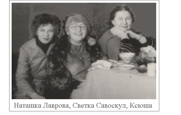 Нас пятеро было – четыре дамы: Натка Лаврова, Светка Савоскул, Ксения Павловна Гутионтова, которую мы все любовно называли Ксюшей и Людка Белова – я ее тогда еще не знал – она в другой лаборатории работала: