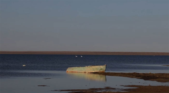 Мы хотели ввести в серию про Акеспе процесс рисования корабля. Мы даже визуализировали себе эту линию фильма – на фоне отступающего моря стоит мольберт с нарисованным кораблем, и таким образом создается впечатление, будто морское судно с холста скользит по реальной водной глади. Мы хотели воссоздать некий мираж, желание местных жителей, чтобы вернулось море, а вместе с ним – и прежняя бурная жизнь рыбаков. Так что на съемки Мадина прихватила картину с кораблем, который мы предложили раскрасить детям героев фильма. Но с самого начала эта затея была запорота, а в конце концов дети и вовсе передумали рисовать.