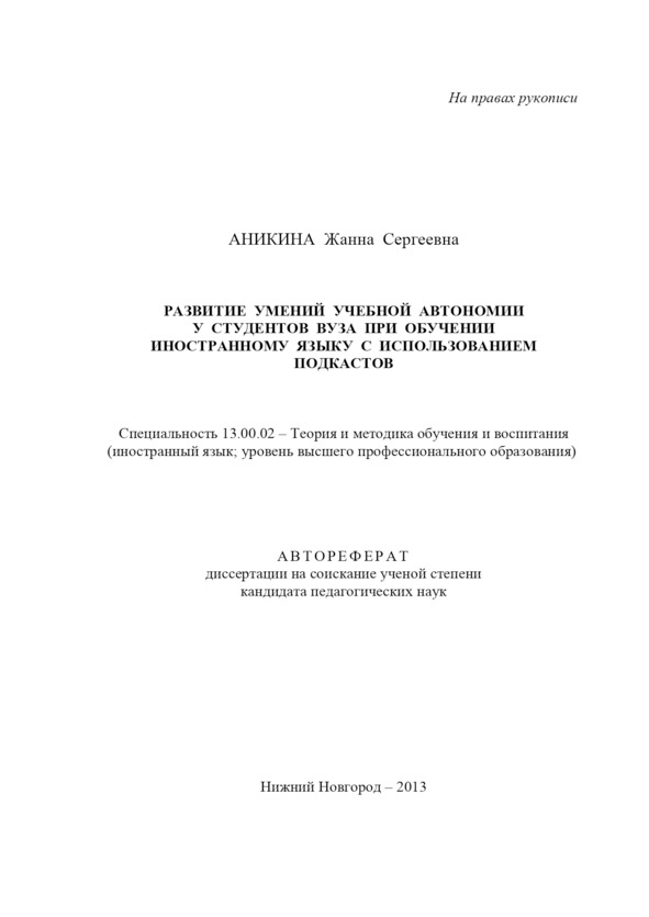Моя поездка в Пятигорск была немного удачнее двух предыдущих операций. За два года с хвостиком я подросла, и в моей работе случилось немало перестроек. Работу оценили положительно, тем не менее, отклонили. Меня уже мало задевали отказы, поэтому я пережила и эту неприятность. По возвращении домой я провела легкую, скорее даже легенькую, ревизию текста в соответствии с высказанными комментариями и положила рукопись в дальний ящик стола. Заканчивался учебный год, и я решила, что пора отдохнуть. В сентябре вдруг совершенно неожиданно на горизонте появилась возможность представить работу в еще один Диссертационный совет. В тот раз мне предстояло путешествие в Нижний Новгород. Все прошло на удивление гладко. Работу приняли. Видимо, пришло время поставить точку в этой истории.